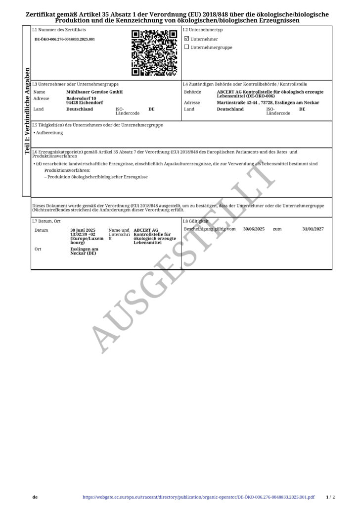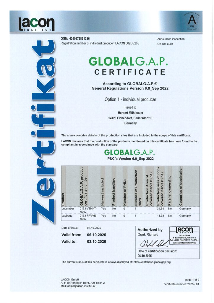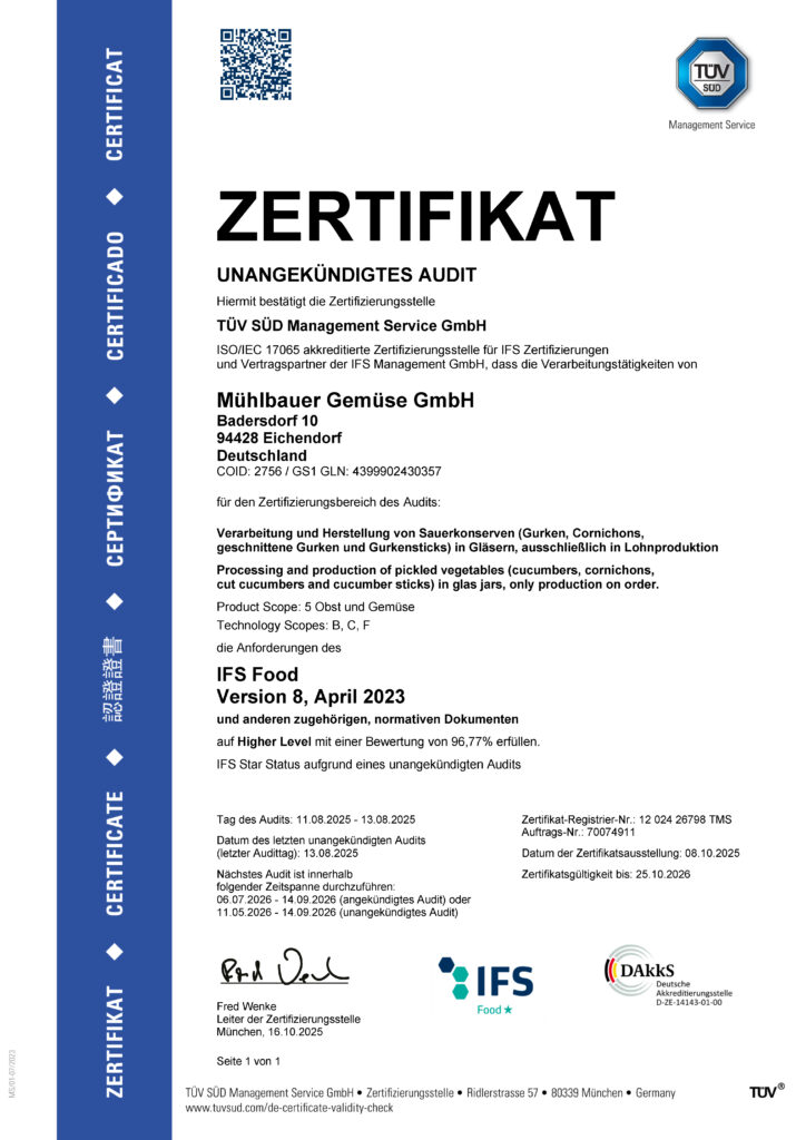Als zukunftsorientiertes Unternehmen sind wir IFS-, GQB- und Bio EU-Zertifiziert.